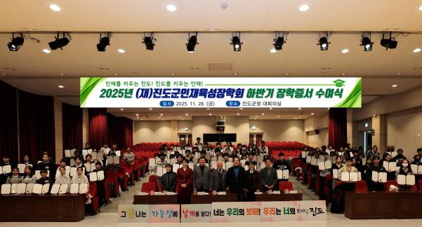 [호남자치뉴스](재)진도군인재육성장학회(이사장 김희수)가 지난 11월 28일(금)에 ‘2025년 하반기 장학증서 수여식’을 열고, 지역 학생들을 위한 장학금을 전달했다.